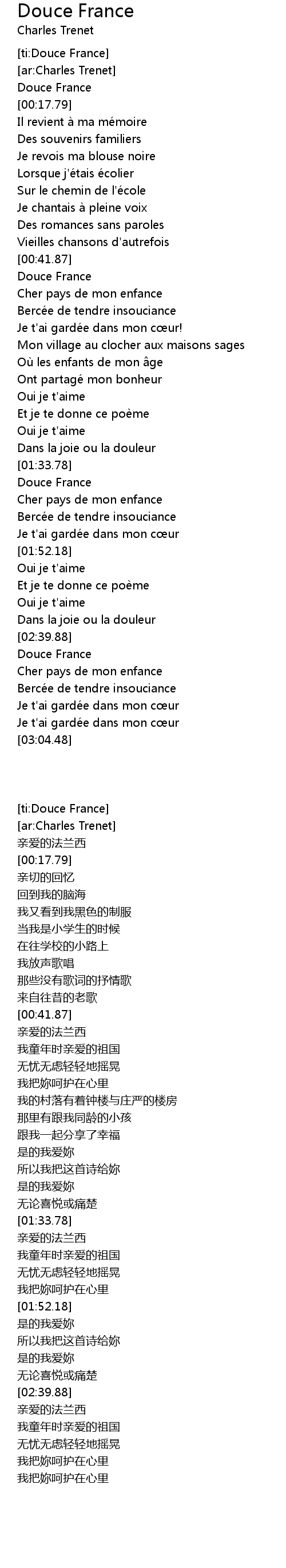 | [00:36.67] | Vieilles chansons d'autrefois |