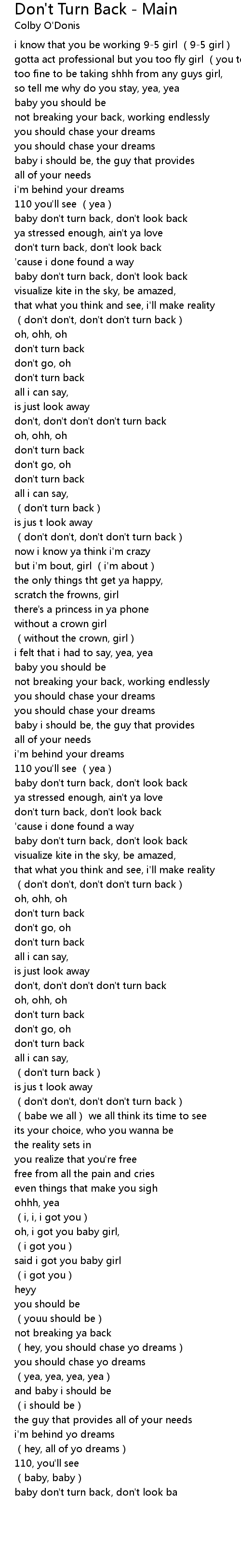 | [02:01.23] | baby don' t turn back, don' t look back |