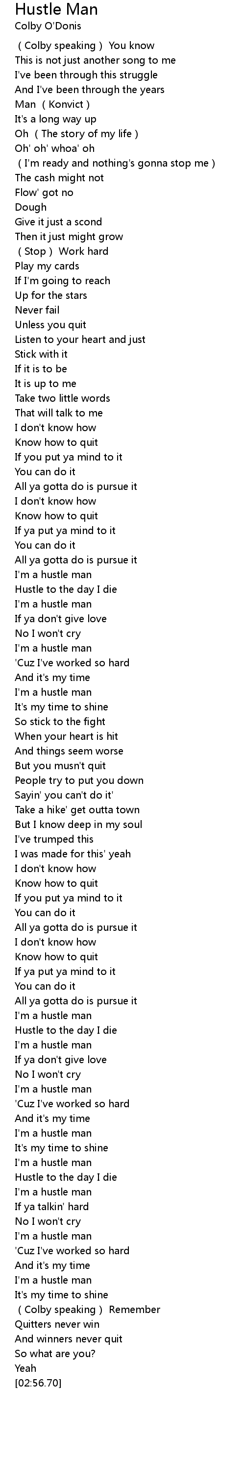 | [02:20.27] | I'm a hustle man |
