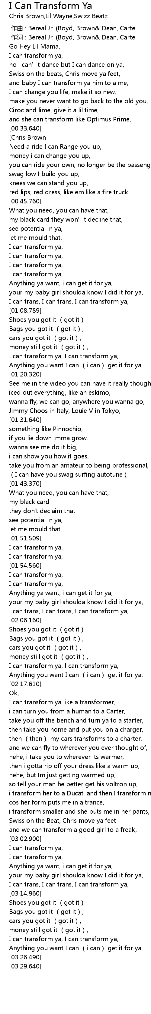 | [03:21.270] | I can transform ya, I can transform ya, |