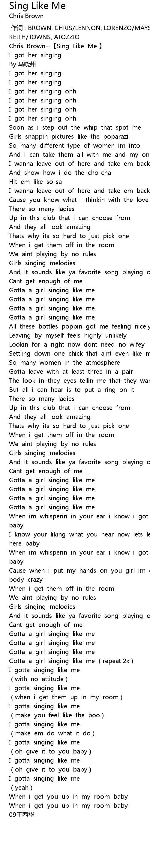 | [00:00.30] | Chris Brown--【Sing Like Me 】 |