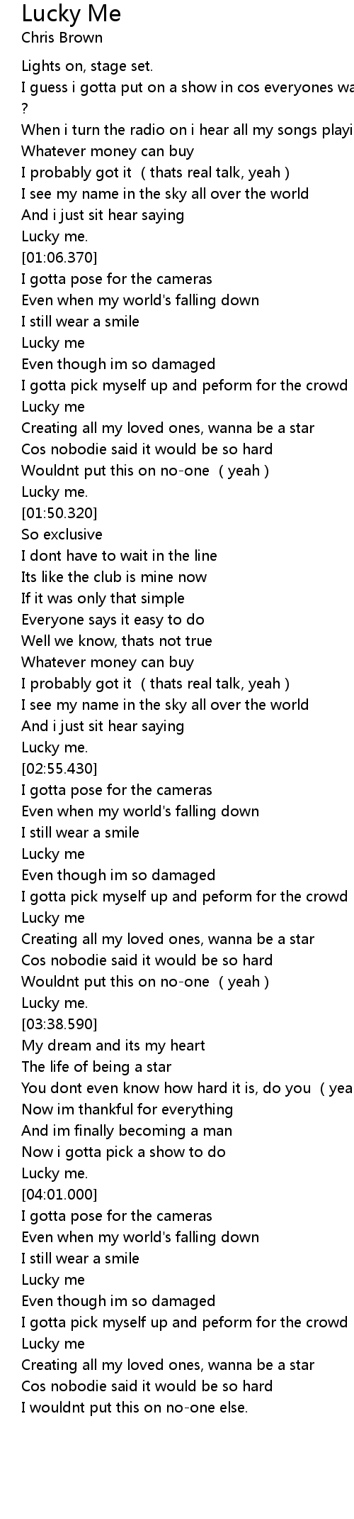 | [04:10.360] | Lucky me |