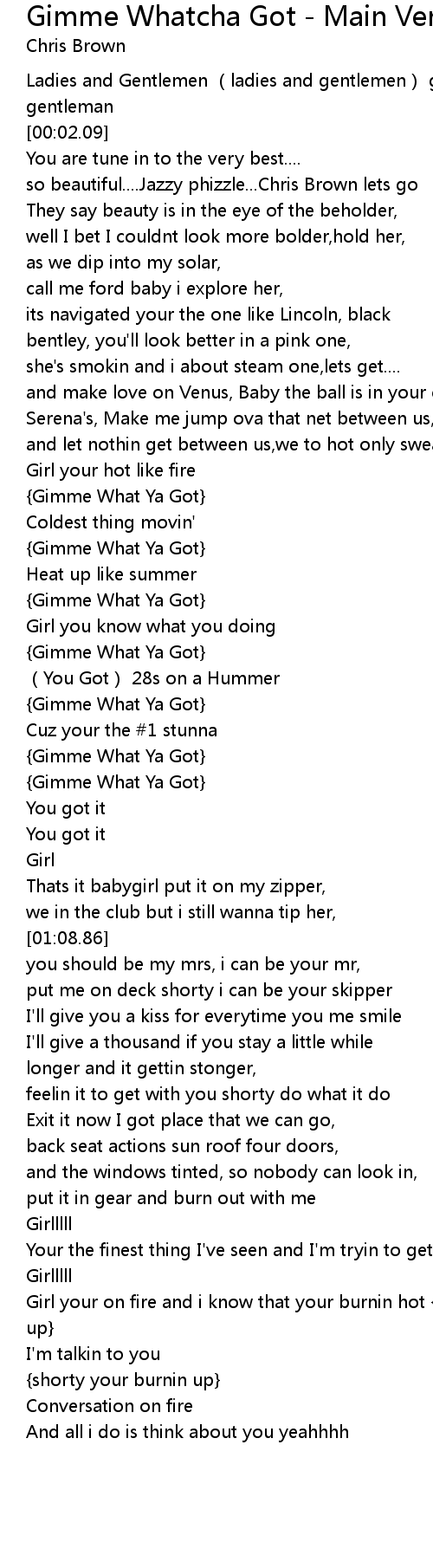 | [01:51.28] | Girl your on fire and i know that your burnin hot {shorty your burnin up} |