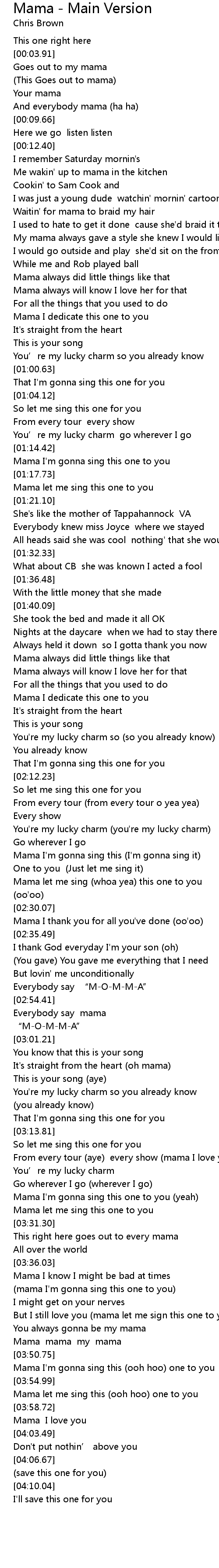 | [03:24.96] | Mama I' m gonna sing this one to you yeah |
