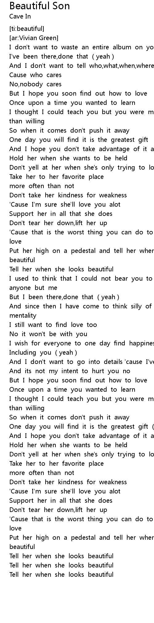 | [03:32.40] | Put her high on a pedestal and tell her when she looks beautiful |