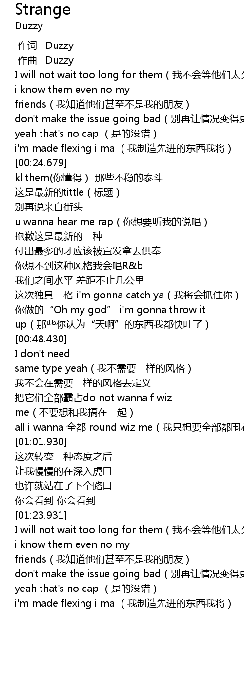| [00:21.679] | yeah that' s no cap shi de mei cuo |
