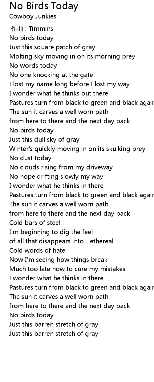 | [01:32.79] | No birds today |