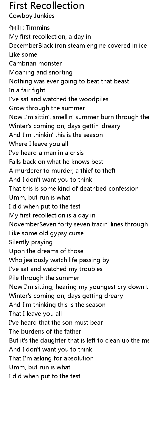 | Song | First Recollection |