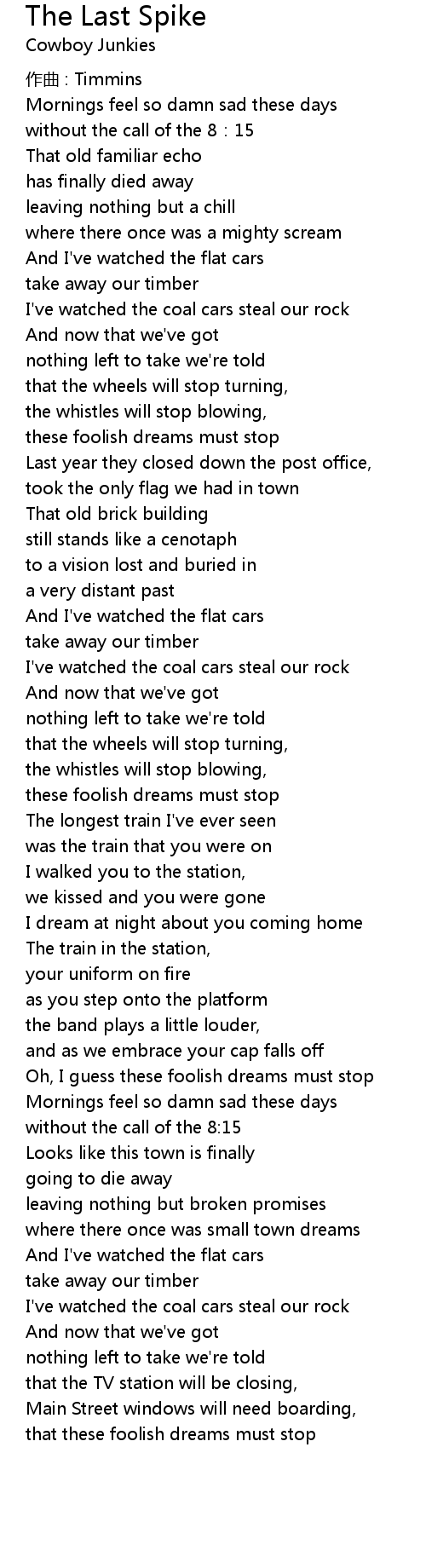 | Song | The Last Spike |