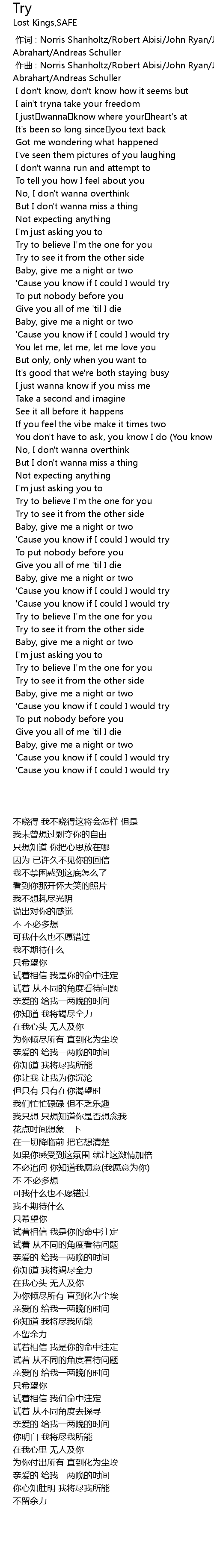 | [00:00.000] | 作词 : Norris Shanholtz/Robert Abisi/John Ryan/James Abrahart/Andreas Schuller |