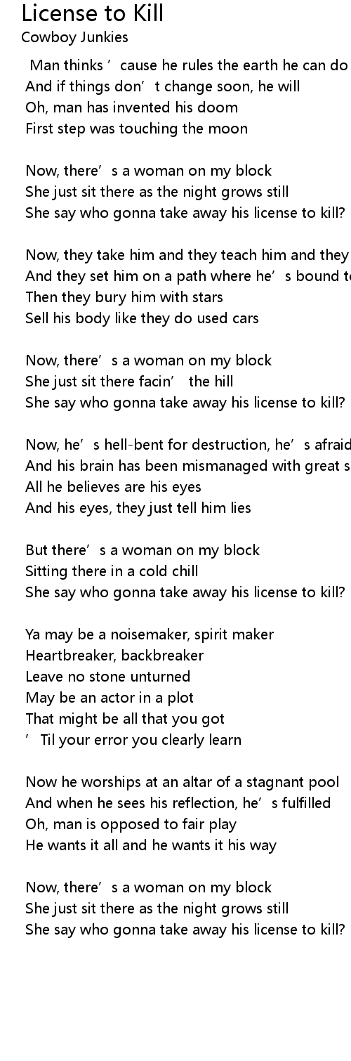 | She say who gonna take away his license to kill? | |