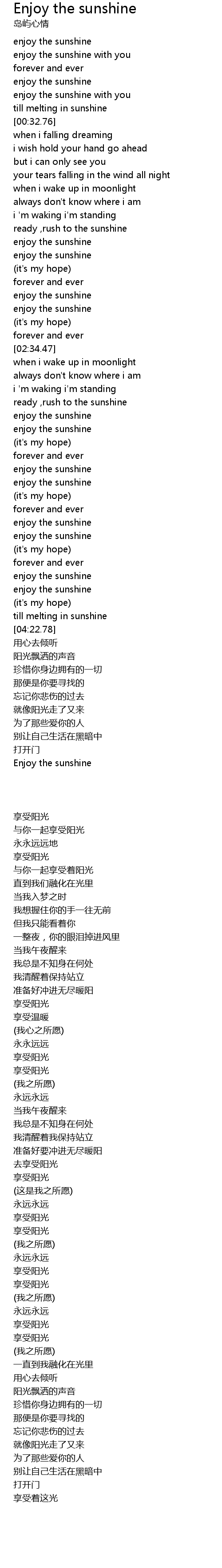 | [02:04.79] | enjoy the sunshine |