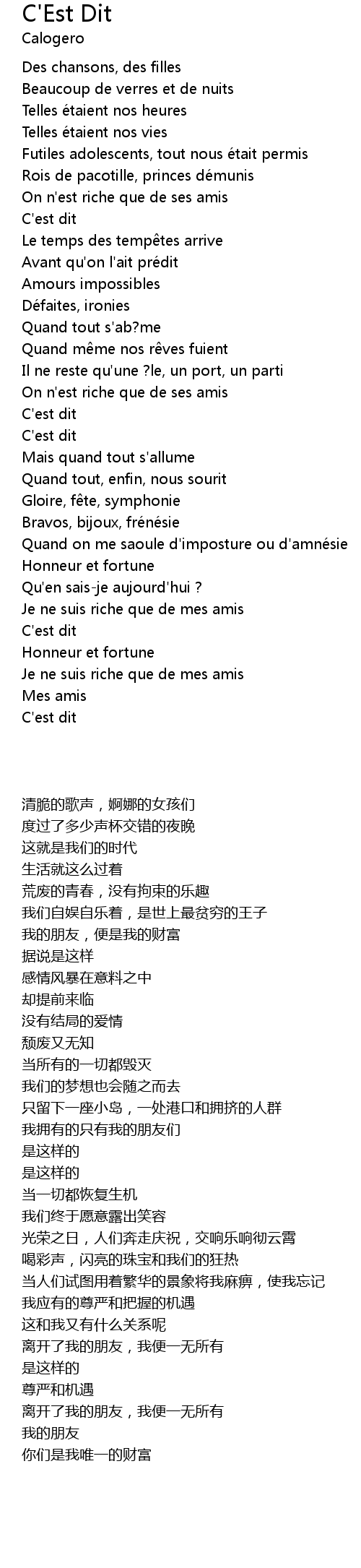 | [02:33.50] | Je ne suis riche que de mes amis |