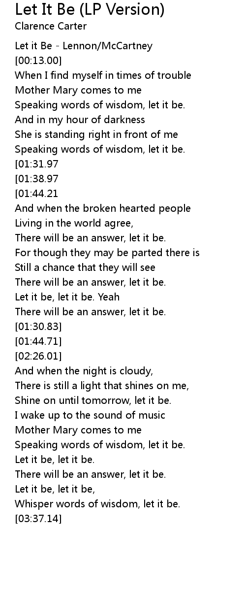 Whisper words of wisdom, let it be. |