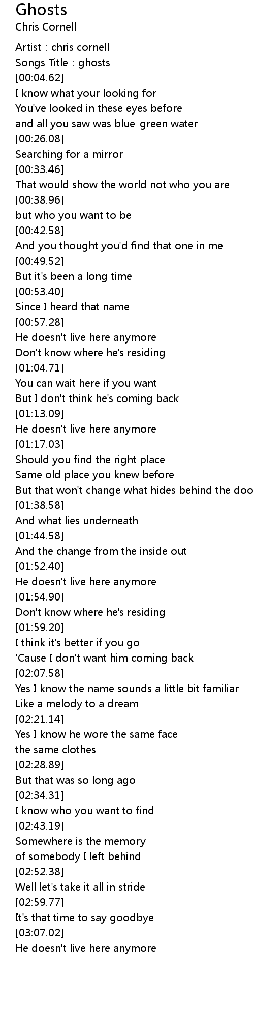 | [03:07.71] | He doesn' t live here anymore |