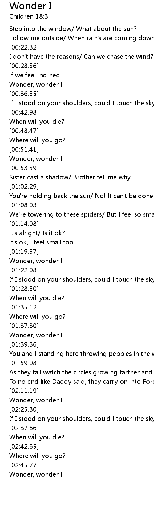 Wonder, wonder I |