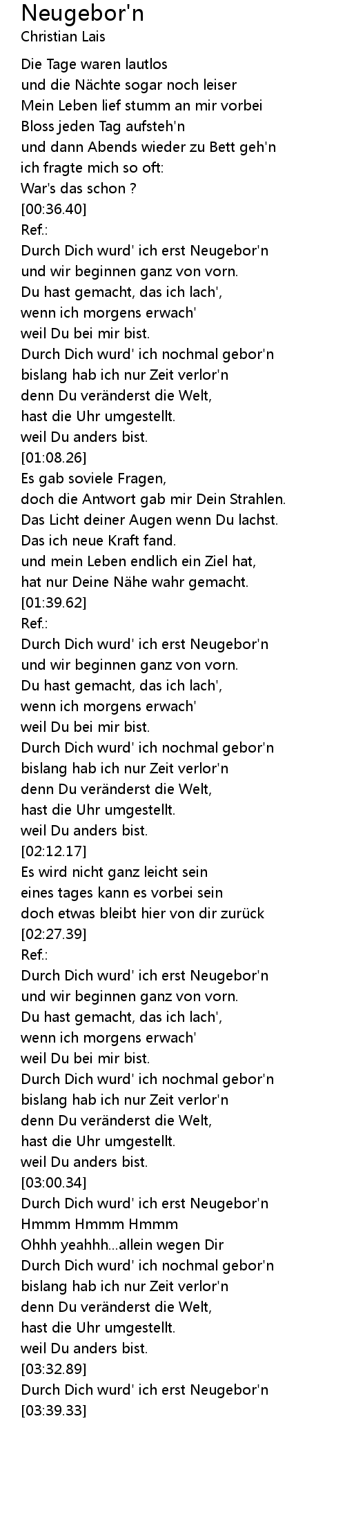 | [03:17.12] | Durch Dich wurd' ich nochmal gebor'n |