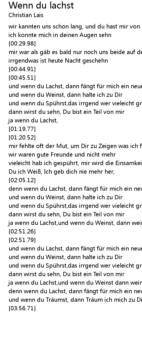 | [02:53.41] | und wenn du Lachst, dann f ngt fü r mich ein neuer Morgen an |