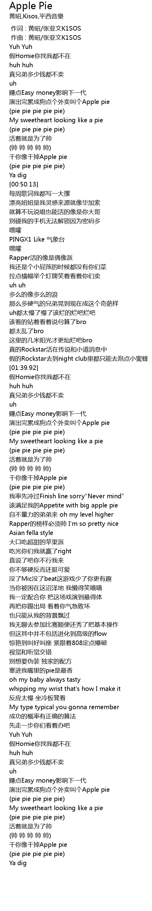 | [03:15.10] | 干你像干掉Apple pie |