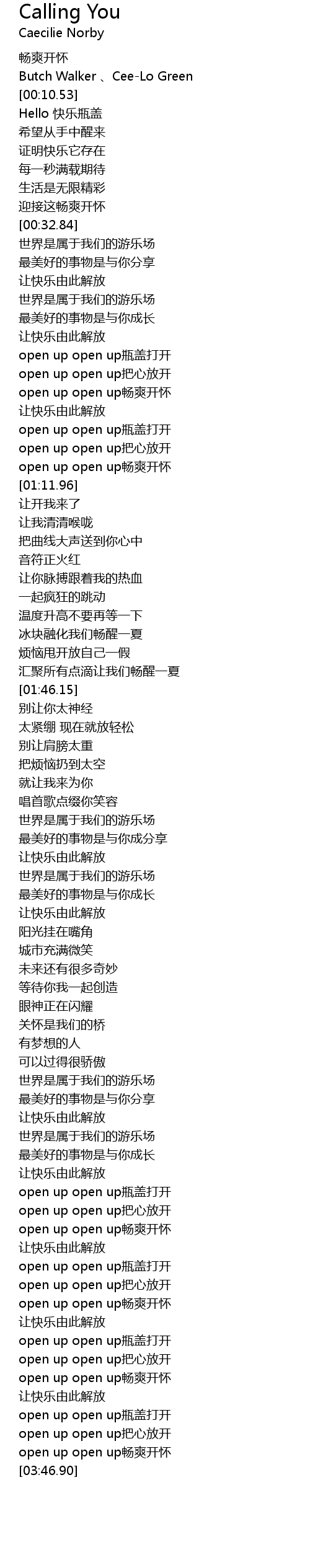 | [00:06.82] | Butch Walker 、Cee-Lo Green |