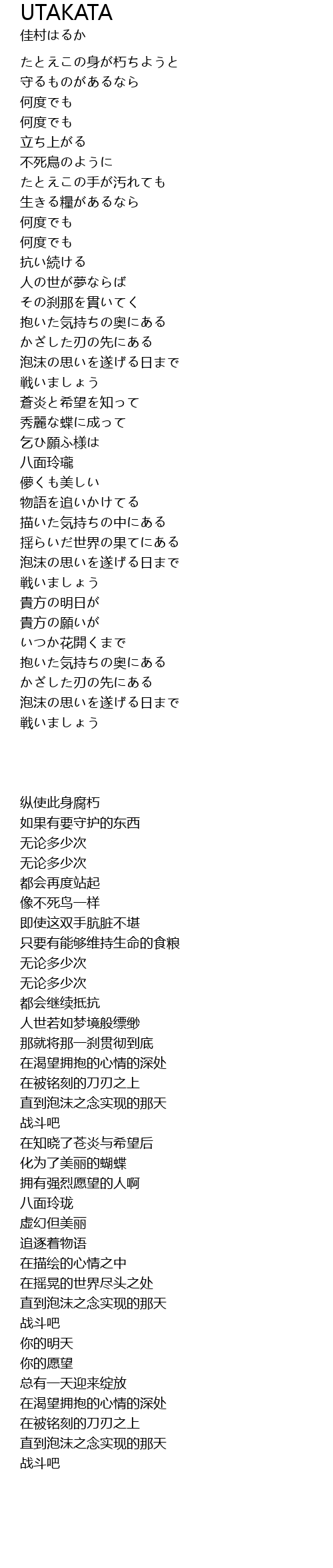 | Song | UTAKATA |
