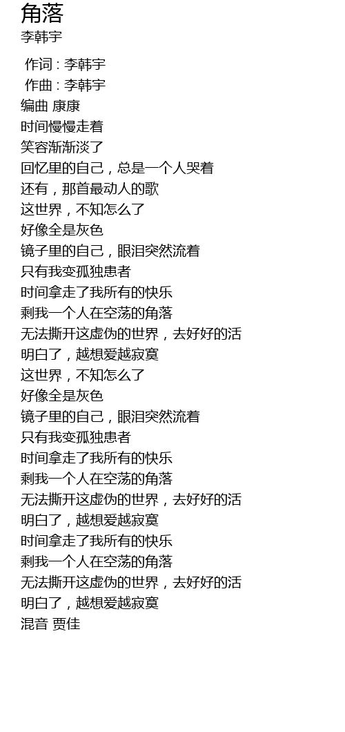 | [00:00.00] | 作词 : 李韩宇 |