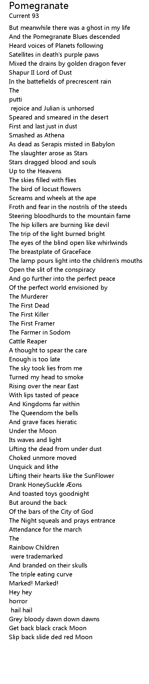 | And the Pomegranate Blues descended | |