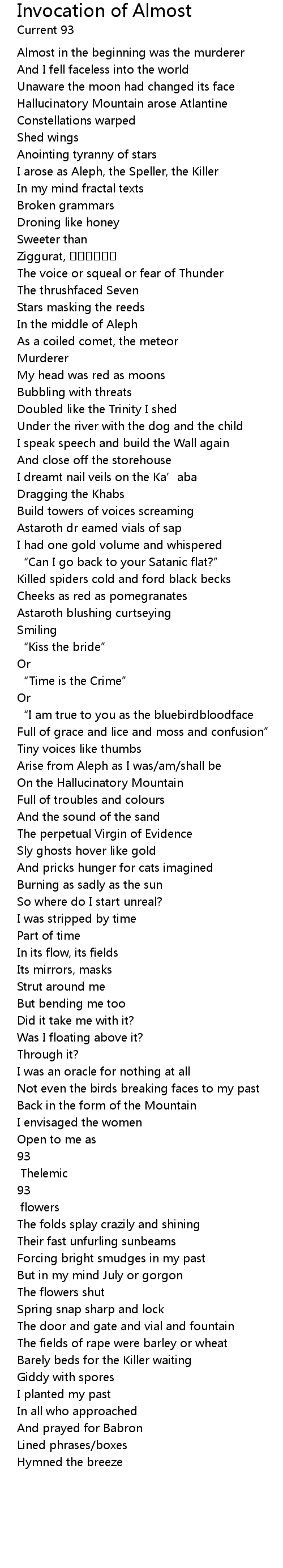 | I arose as Aleph, the Speller, the Killer | |