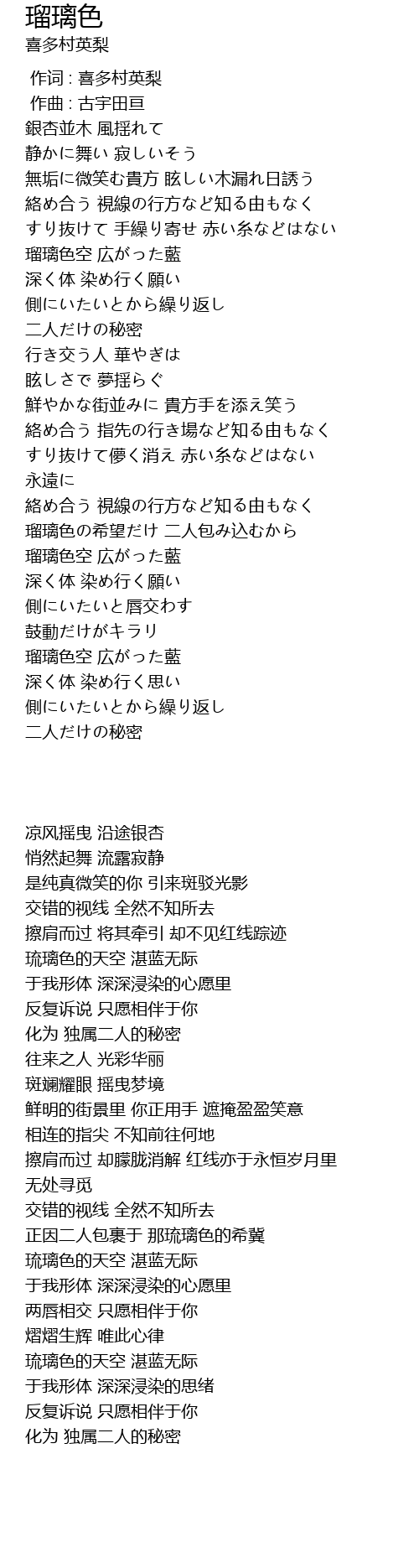 | Song | 瑠璃色 |