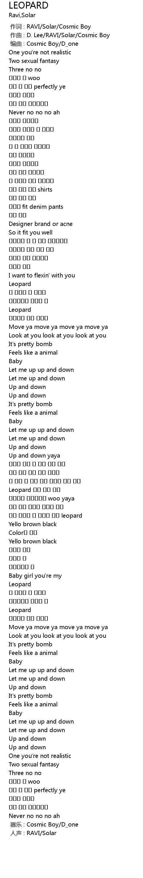 | [01:46.54] | 가끔 물어줘 오 자주는 말고 leopard |