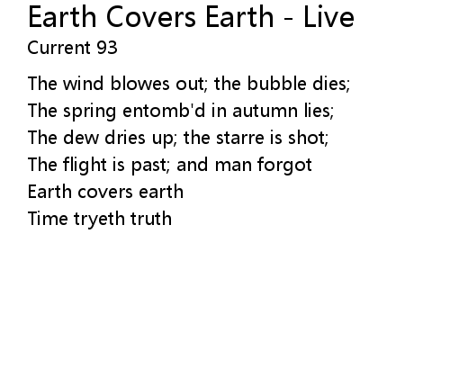 | Song | Earth Covers Earth - Live |