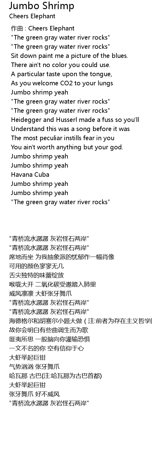 | Song | Jumbo Shrimp |