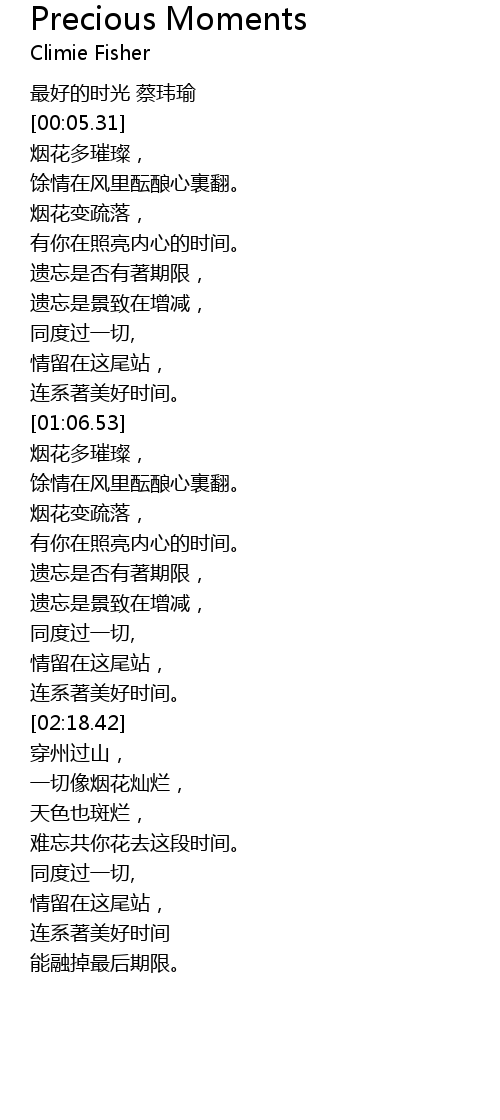 | [00:03.31] | zuì hǎo de shí guāng cài wěi yú |