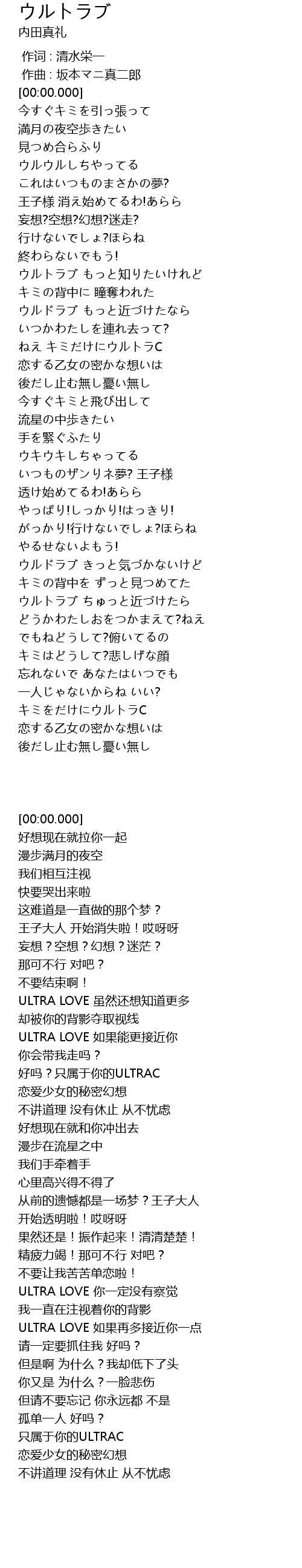 | [00:53.120] | ウルトラブ もっと知りたいけれど |