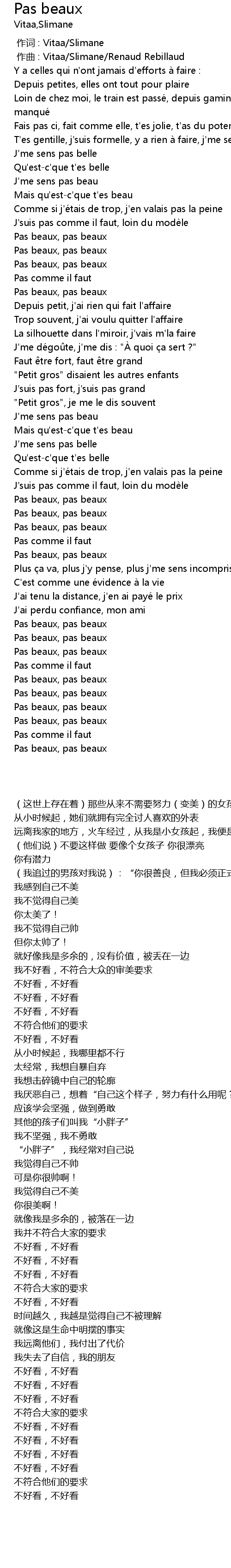| [00:44.77] | Pas beaux, pas beaux |