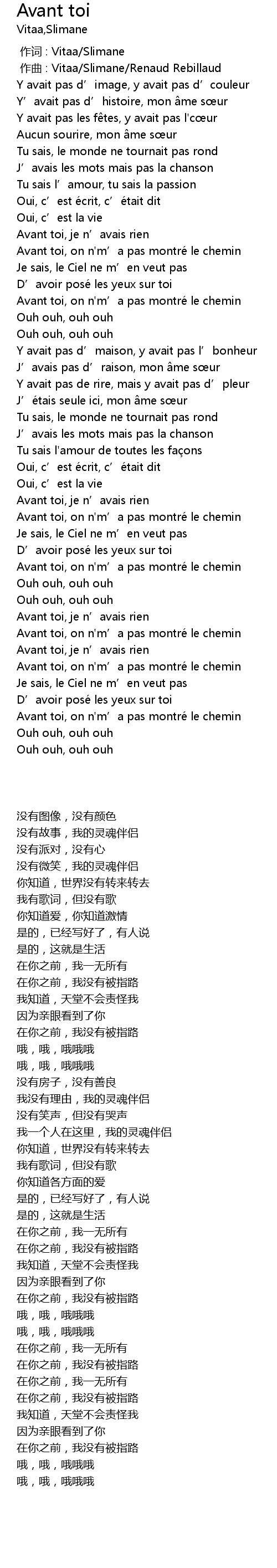 | [00:00.000] | 作词 : Vitaa/Slimane |