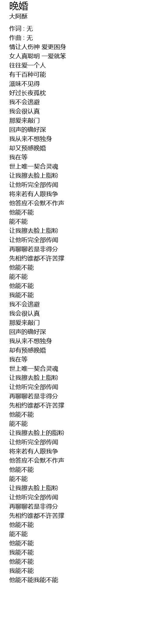 | 却又预感晚婚 | |