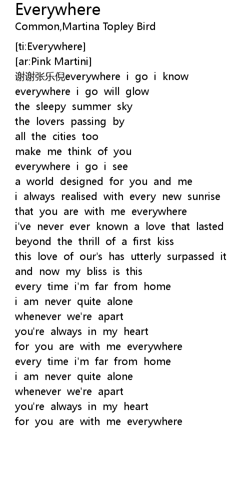| [00:02.457] | xie xie zhang le ni everywhere i go i know |