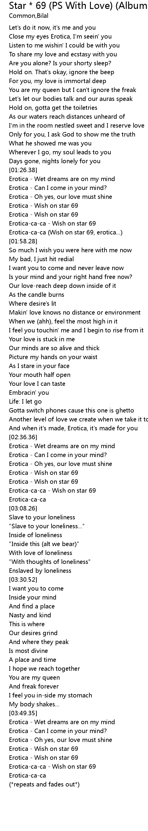| [03:00.92] | Erotica-ca-ca - Wish on star 69 |