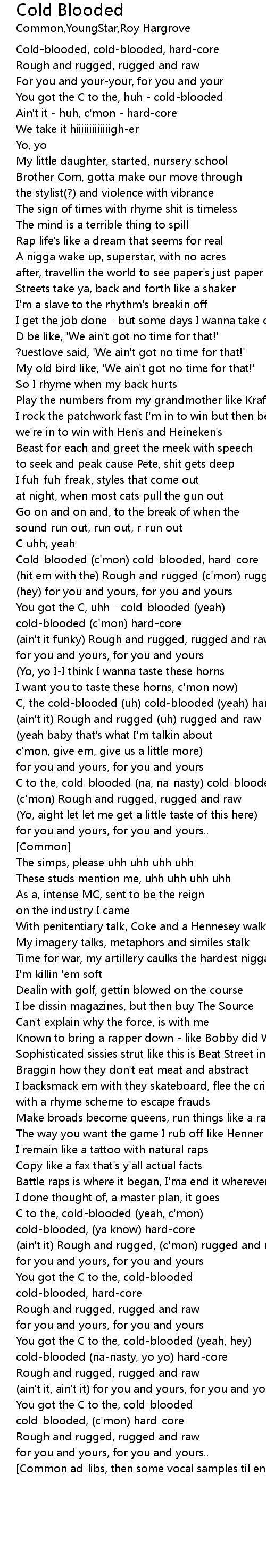 C to the, cold-blooded (yeah, c'mon) |