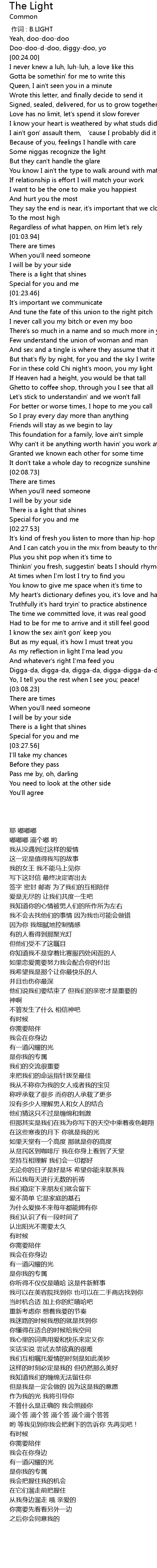 | [00:00.00] | zuo ci : B. LIGHT |