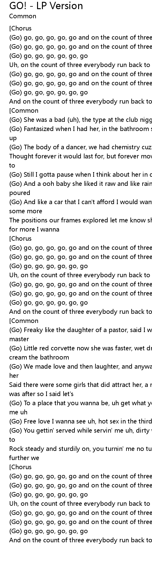 | [00:18.310] | (Go) go, go, go, go, go and on the count of three |