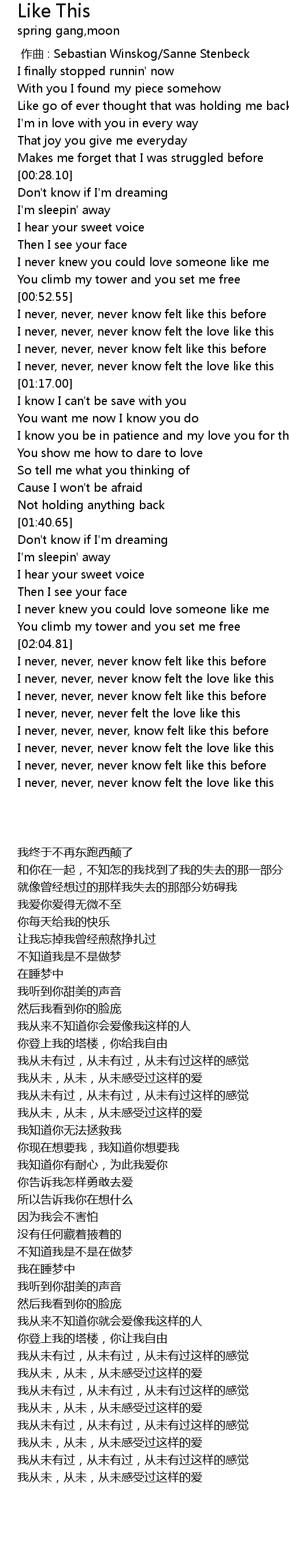 | [02:35.17] | I never, never, never know felt the love like this |