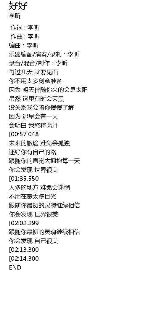 | [02:00.102] | 你会发现 世界很美 |
