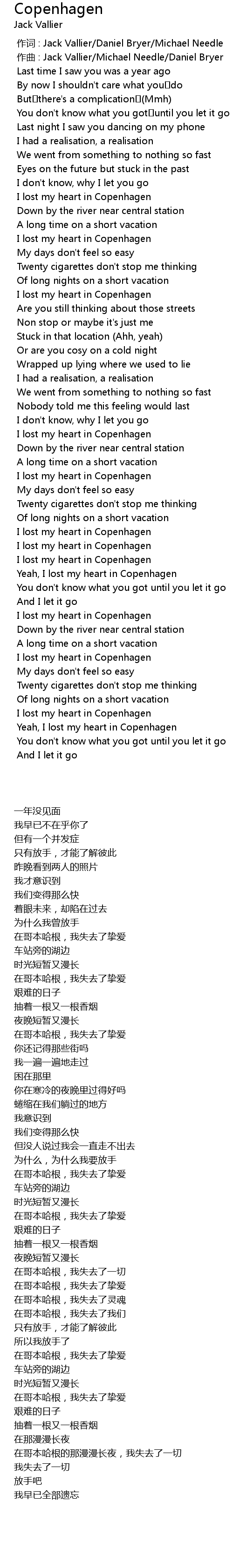| [02:49.987] | Yeah, I lost my heart in Copenhagen |