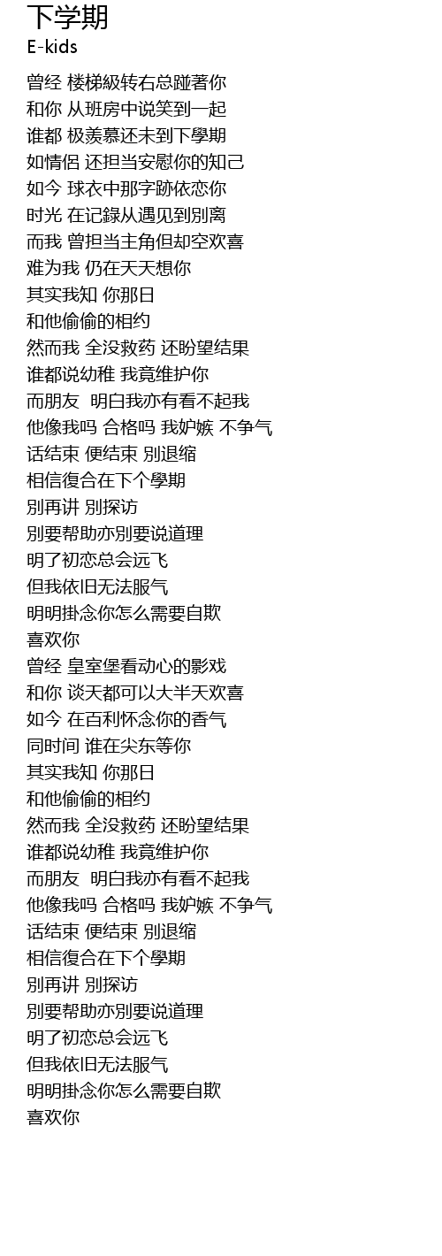 | [00:26.40] | 谁都 极羨慕还未到下學期 |