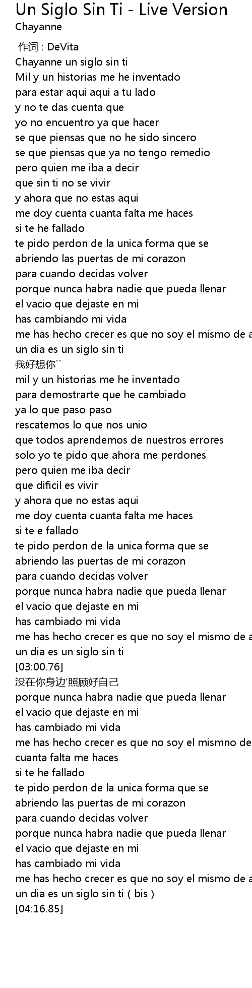 | [04:10.72] | un dia es un siglo sin ti bis |