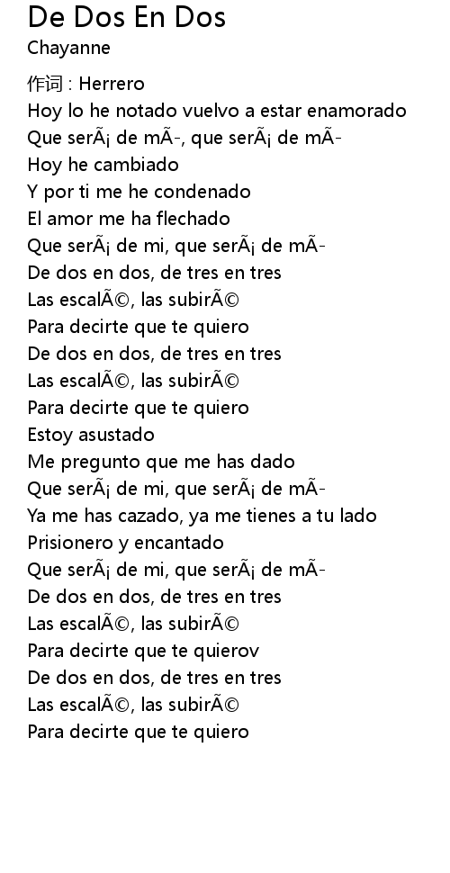| Song | De Dos En Dos |