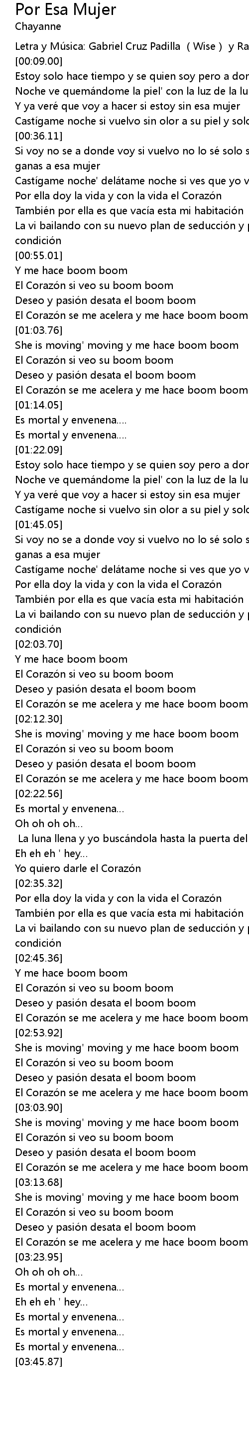 | [03:01.67] | El Corazo n se me acelera y me hace boom boom boom boom |