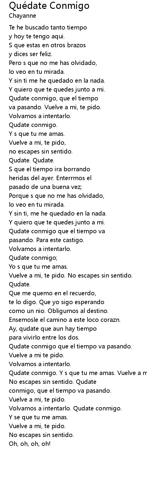 | Qudate conmigo. Y s que tu me amas. Vuelve a mi, te pido. | |